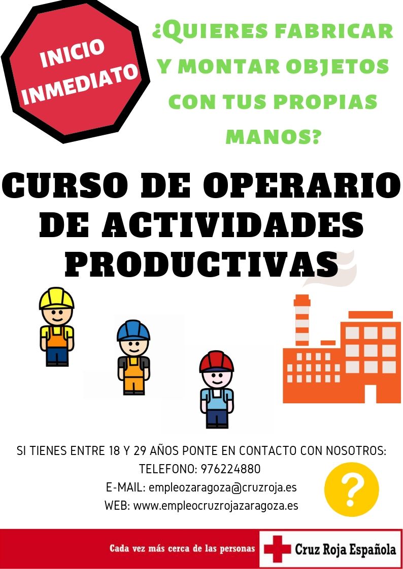 En Cruz Roja no paramos ni siquiera en Semana Santa, te ofrecemos una nueva oportunidad de formación GRATUITA para los más jóvenes en uno de los sectores de actividad que demanda el mercado laboral. Damos comienzo de forma inmediata un curso de OPERARIO DE ACTIVIDADES PRODUCTIVAS dirigido a jóvenes de 18 a 29 años que estén desempleados y tengan interés por encontrar un trabajo.