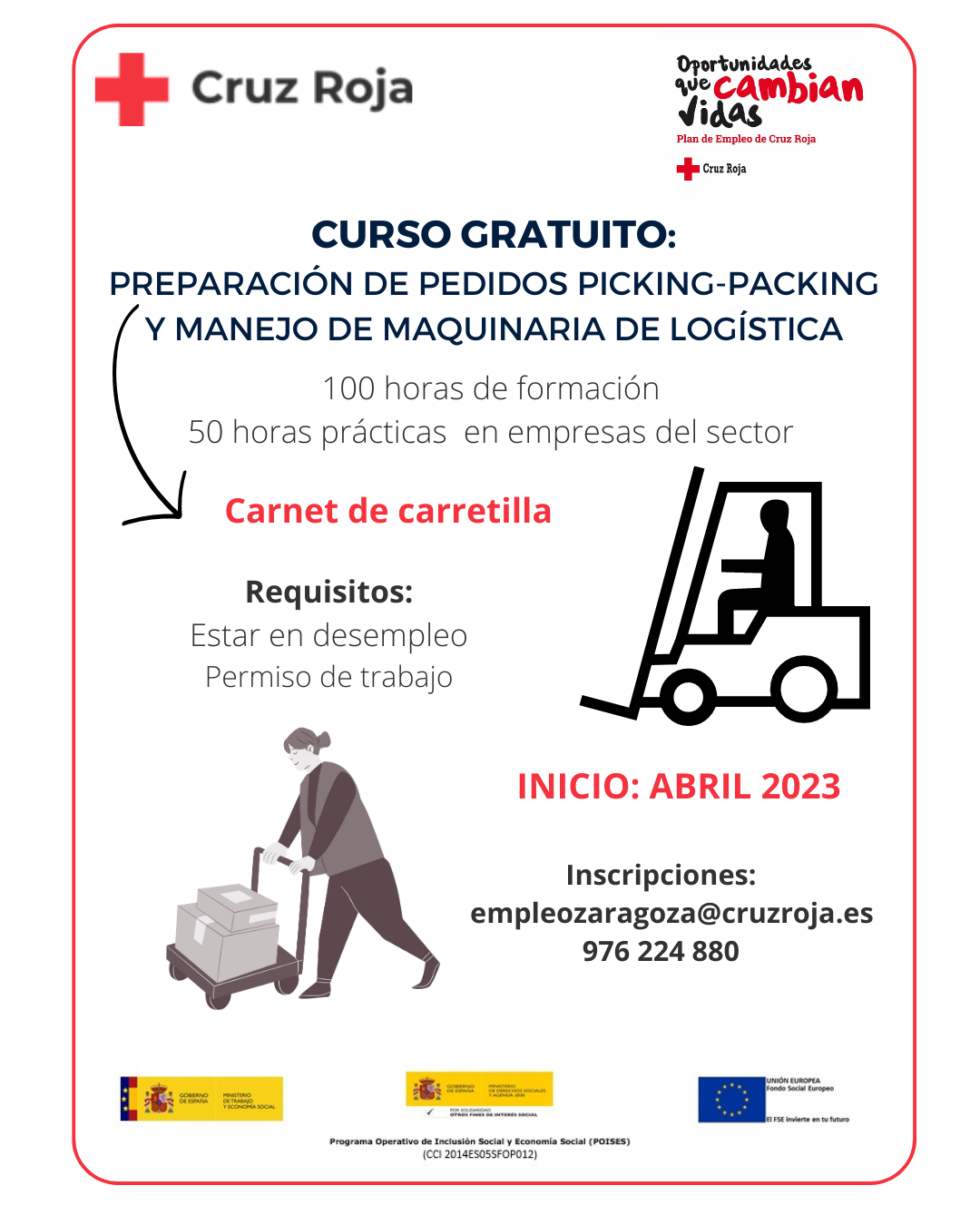 Contáctanos en empleozaragoza@cruzroja.es (indicando en el asunto: CURSO PREPARADOR PEDIDOS)