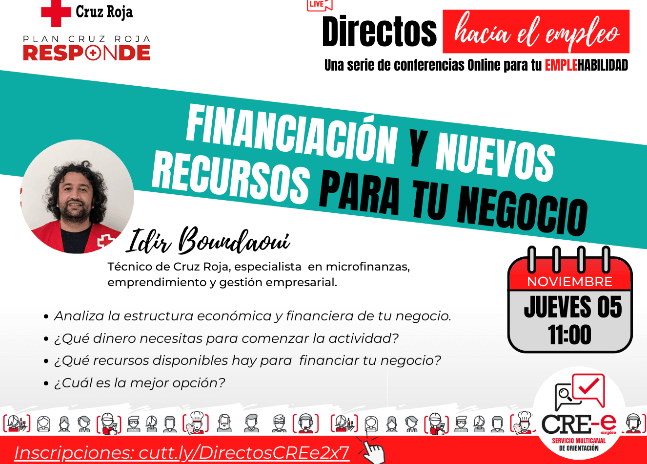 ¿Cuál es la mejor opción?De la mano de Idir Boundaoui técnico de Cruz Roja, especialista en microfinanzas, emprendimiento y gestión empresarial y con una sólida experiencia tanto en el tercer sector como en sector privado. Idir nos acompañará para dar todas las claves necesarias para asegurar la salud financiera de tu negocio bajo un enfoque de impacto positivo en tu vida y en la de su entorno.